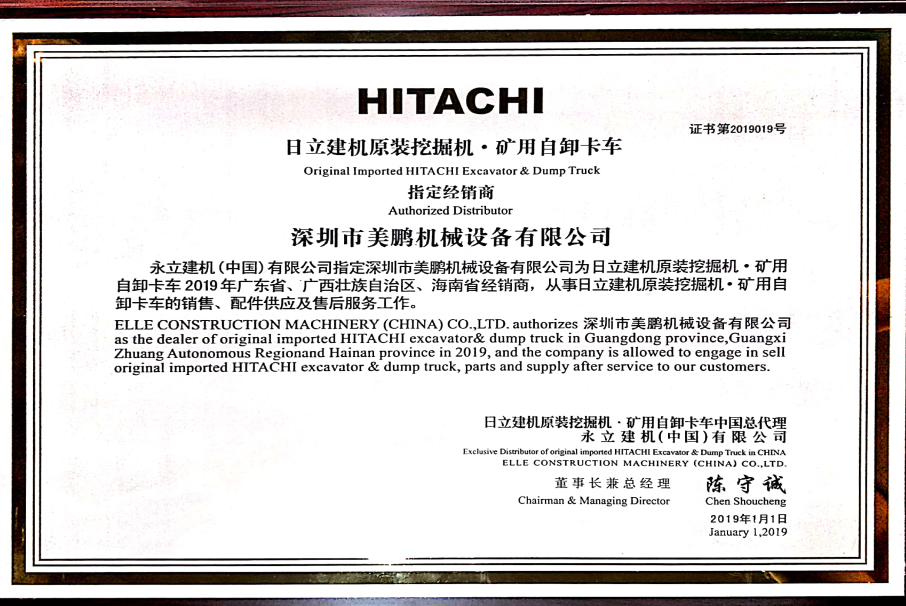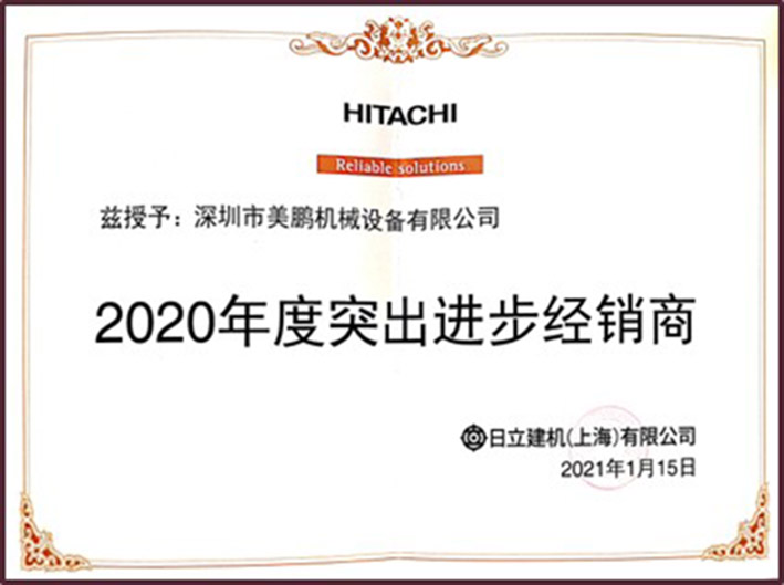 2020年被日立建機(jī)(上海)有限公司評(píng)為“突出進(jìn)步經(jīng)銷商”