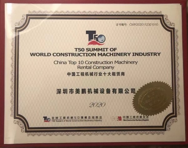 2020年榮獲“中國工程機(jī)械行業(yè)十大租賃商”