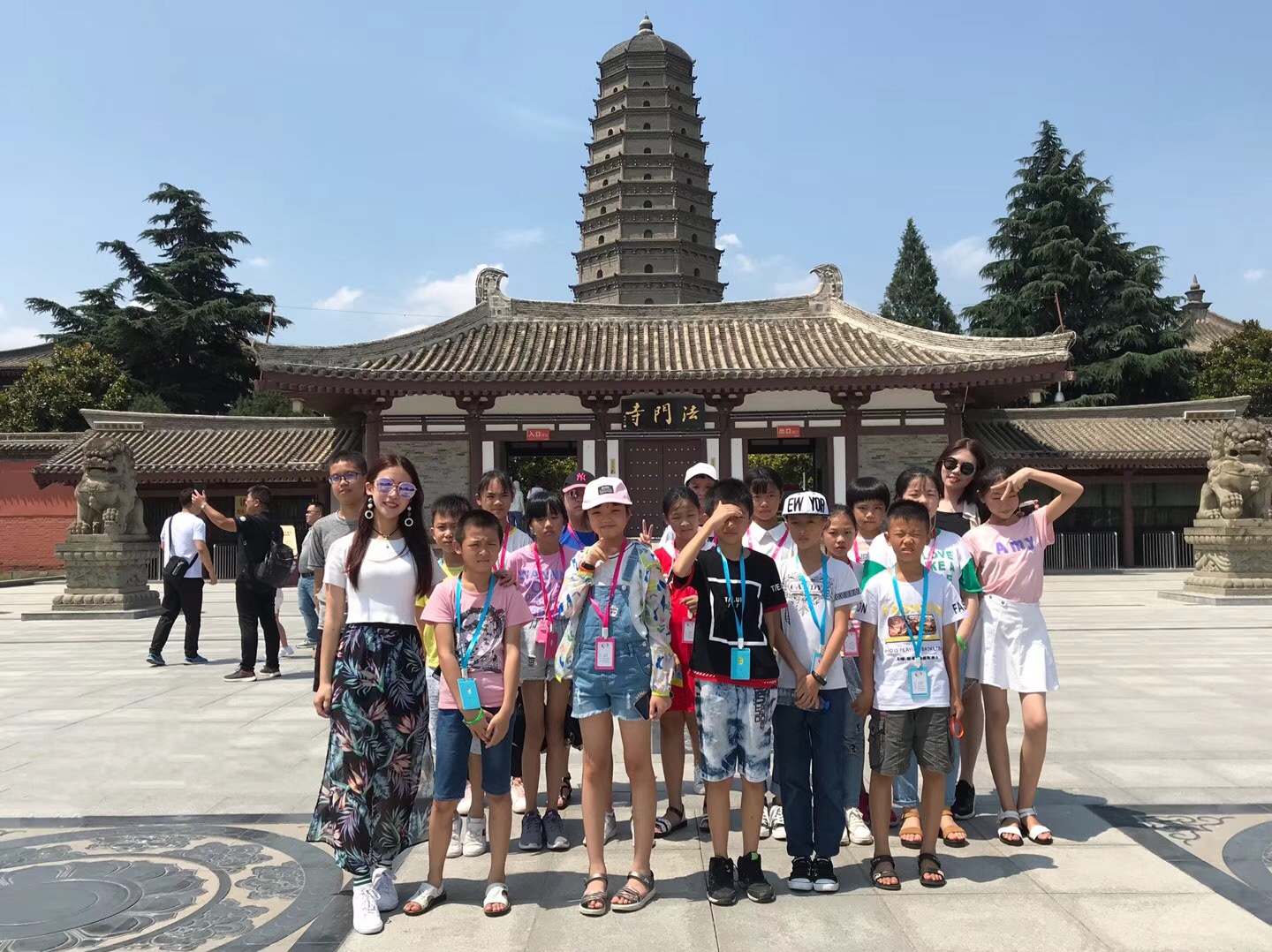 我們一同參觀了佛教圣地法門(mén)寺院,這里真的是步步古跡,件件珍品。下圖為導(dǎo)游在跟小朋友講解法門(mén)寺一些歷史事跡。