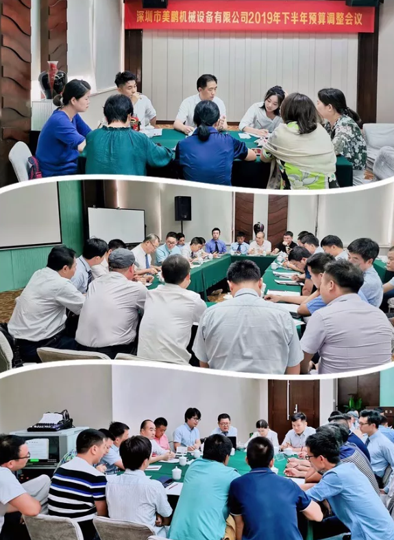 7月13日,深圳市美鵬機(jī)械設(shè)備有限公司在深圳易尚北方酒店召開了2019年下半年預(yù)算調(diào)整會議,總公司副部長及以上人員、各分公司經(jīng)理及服務(wù)經(jīng)理,租賃公司經(jīng)理,工廠總經(jīng)理及廠長,各區(qū)域會計、美瑞克公司經(jīng)理等人員參加了本次會議。會議在上午八點半準(zhǔn)時開始,由財務(wù)部牛總監(jiān)主持。